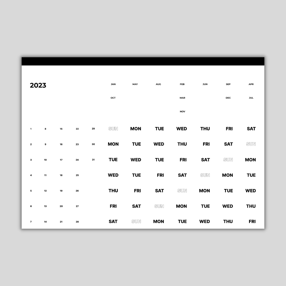 One-Page calendar 2023 / A4, A3, letter portrait / minimalist calendar 2023 / Download PDF